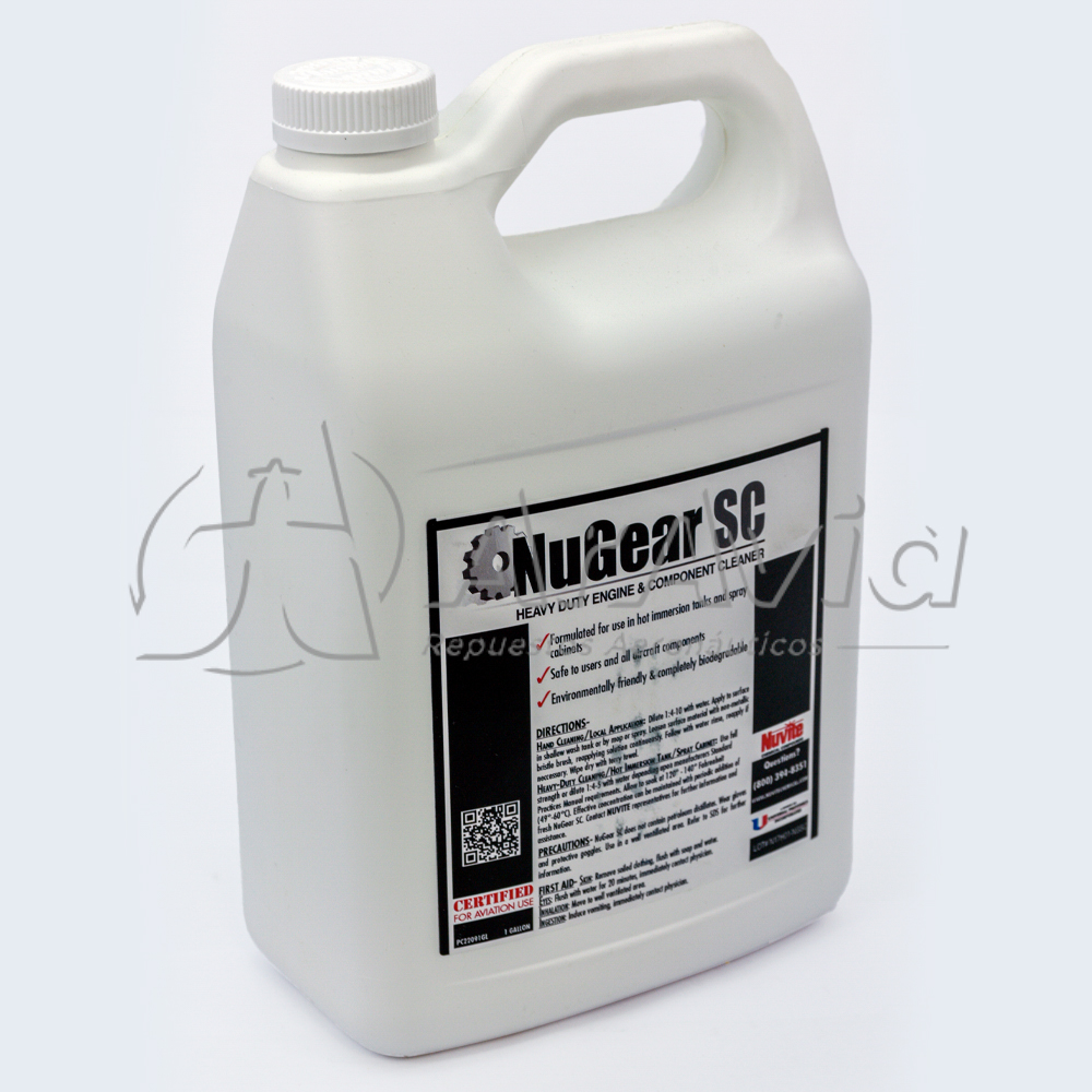 NuGear SC es un compuesto limpiador acuoso de trabajo pesado para el trabajo de desengrasado de motores y componentes de aviación