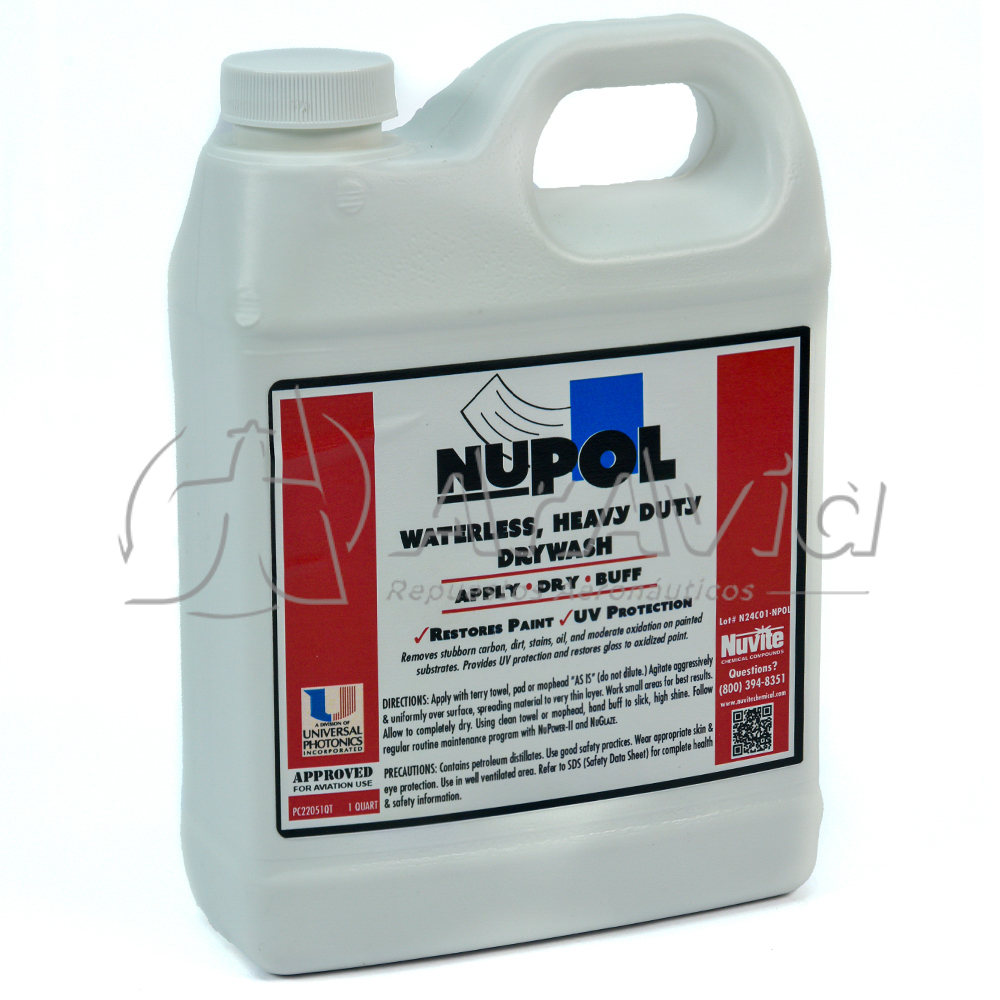 NuPol es un limpiador de TRABAJO PESADO que restaura la pintura a la vez que aporta protección UV. Es la herramienta ideal para aquellas situaciones realmente difíciles. Anillos de carbón "horneados" en las reversas de las turbinas, rastros de carbón que salen del escape, o restos oxidados en la pintura. NuPol es fácil de usar, simplemente fregar con un paño de algodón en movimiento circular, agitando hasta lograr una fina capa, dejarlo secar y luego quitar frotando el polvo remanente hasta revelar una superficie pintada limpia, brillante y con protección UV. Sin agua ni nada que interfiera con otras operaciones de mantenimiento. NuPol puede restaurar el aspecto de la pintura y su esquema de limpieza al mismo tiempo!